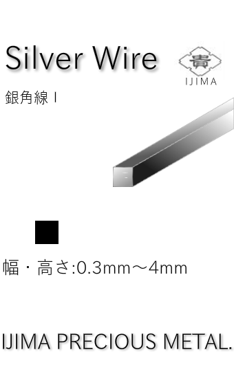 幅 ・ 高さ 0.3mm~4mm 銀角線Ⅰ : シルバーソフトワイヤー ・SILVER9999 ・SILVER950 ・SILVER925